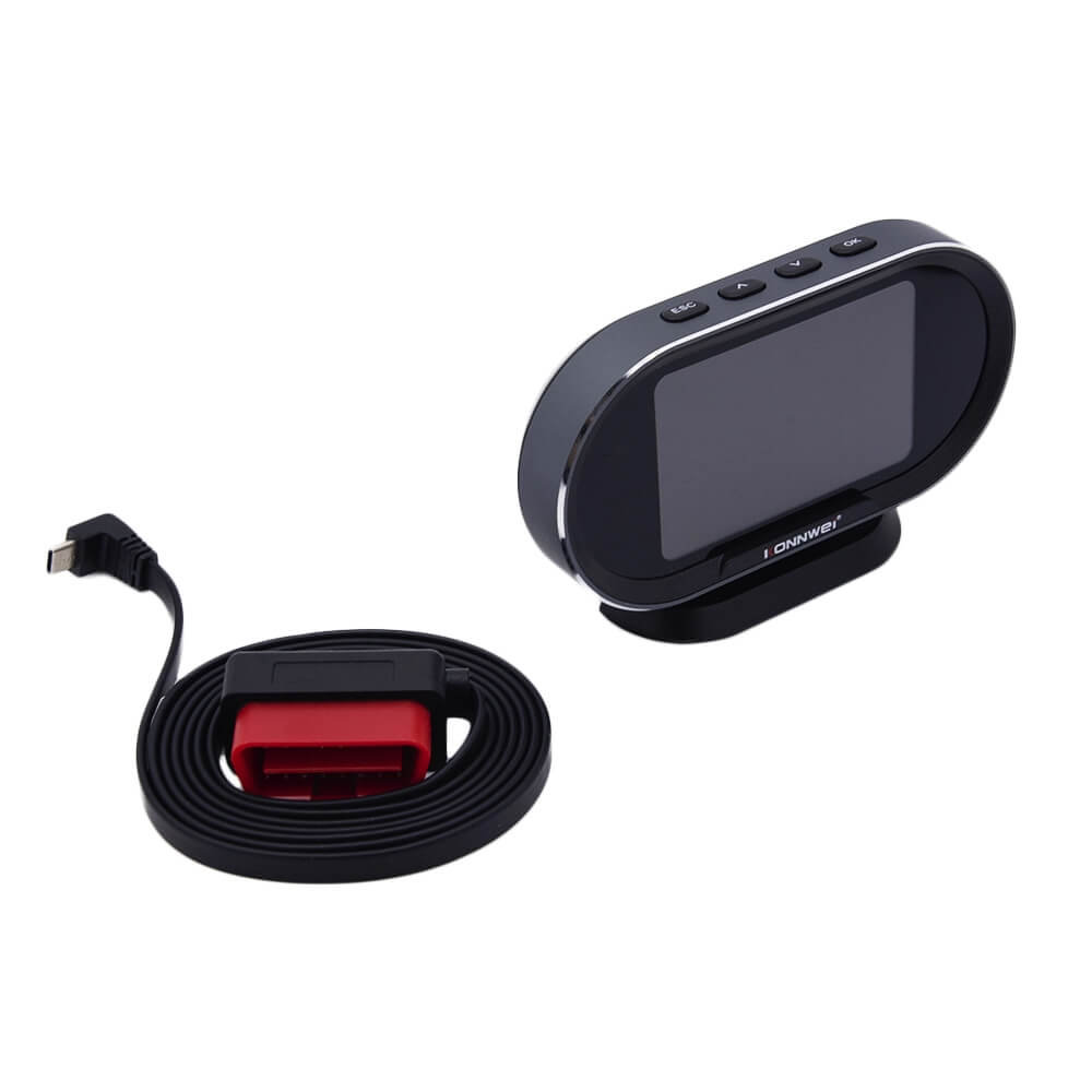 - ОсобенностиВывод мгновенных значение параметров (5 из 15 возможных), Секундомер разгона 0-100 км/ч, Звуковое и световое предупреждение о превышении скорости (порог устанавливается в настройках), Шкала спидометра/оборотов двигателя с цветовой градацией, Автоматическая регулировка яркости экрана (день/ночь) в зависимости от освещенности, Счетчик расхода топлива, Возможность перевернуть экран (программно) для установки на солнцезащитный козырек, Быстро считывает диагностические коды неисправностей (ДКН), С его помощью можно сбросить индикаторы ошибки и удалить ДКН, Считывает потоковые данные ДКН в реальном времени, Обновление прошивки через интернет (при подключении к ПК)