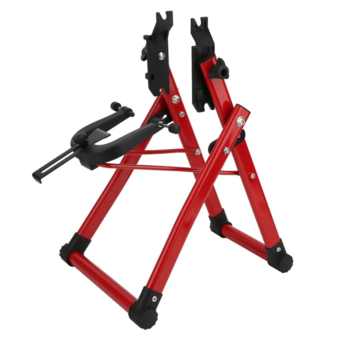 Изготовленный из прочного алюминиевого сплава, этот стенд обеспечивает надежную опору для проведения ремонтных работ на ваших велосипедных колесах.
