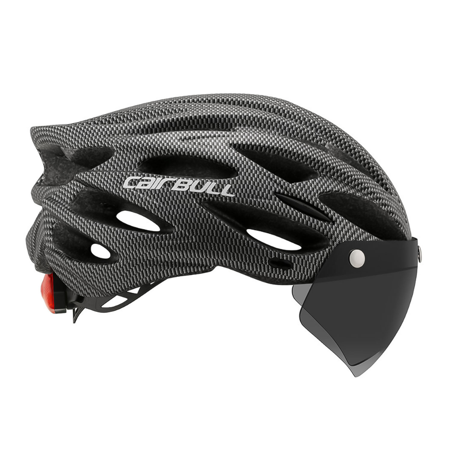 Велошлем со съемным визором Cairbull предназначен для защиты головы при катании на велосипеде, лыжероллерах или моноколесе. Размер шлема для велосипеда регулируется от 54 до 61 сантиметра. Вентиляционные отверстия обеспечивают удобство при катании в жаркую погоду. Съемный визор выполнен из небьющегося поликарбоната и крепится к шлему на магнитах. Экран обеспечивает отличный обзор и гарантирует безопасность глаз от солнечных лучей, пыли и насекомых. Также в комплекте козырек из пластика, который крепится при помощи двух защелок. Сзади фонарь красного цвета с тремя режимами работы. Система ремней Y-strap с мягкой подкладкой для подбородка. Шлем для велосипеда имеет съемную и моющуюся подкладку. Корпус изготовлен из ударопрочного поликарбоната и вспененного пенополистирола. Шлем подойдет любителям как горного, так и шоссейного велосипеда.