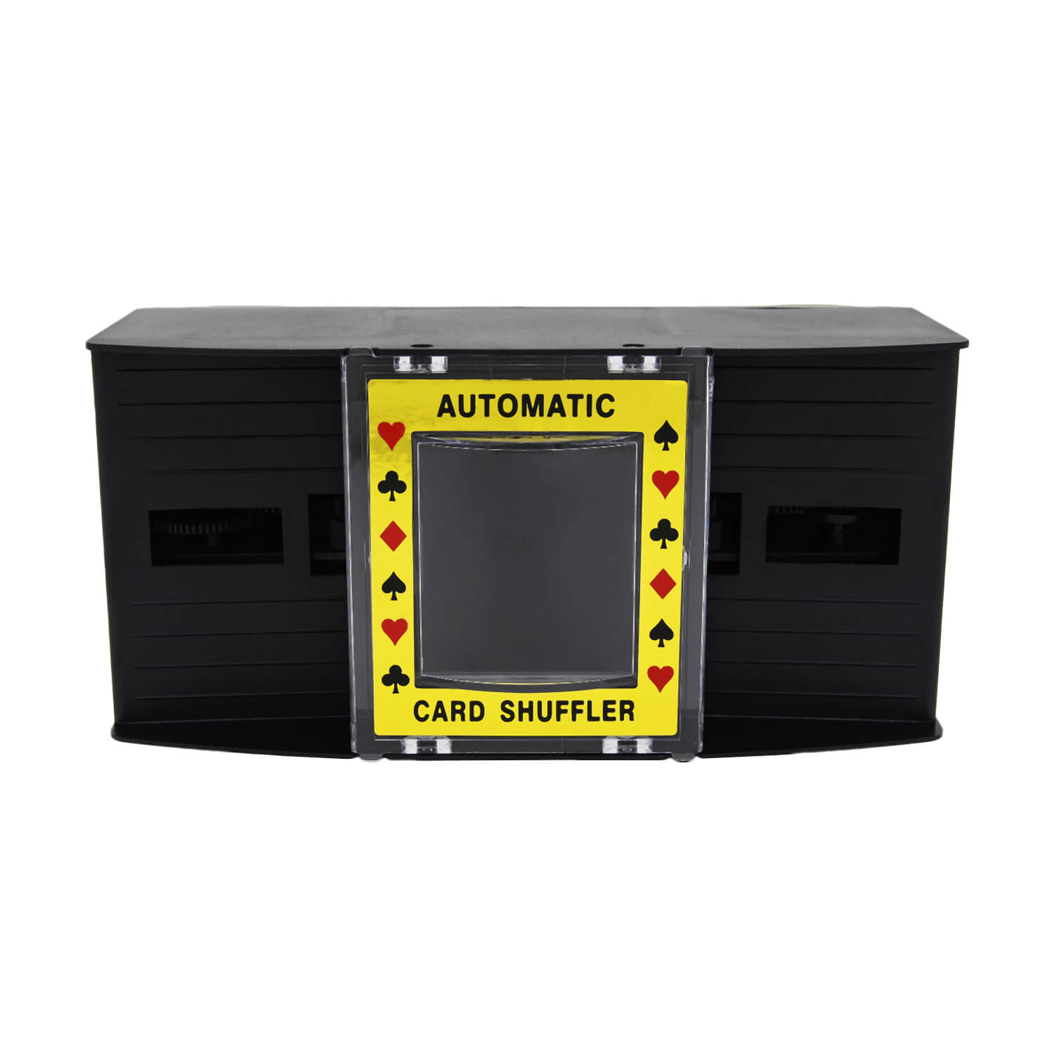 Шафл-машинка для перемешивания карт Deka подойдет для домашних карточных турниров с целью исключения шулерства. Стильная и компактная шафл машинка вмещает до двух полных колод и равномерно их размешивает без участия игроков, создавая случайное расположение карт. Помимо прямого назначения шафл машинка для карт выполняет декоративную функцию и украшает покерный стол. Машинка изготовлена из АБС пластика черного матового цвета с прозрачными вставками. Работает от четырех батареек типа АА. Машинка может использоваться как в казино, так и для домашнего использования в карточных играх.