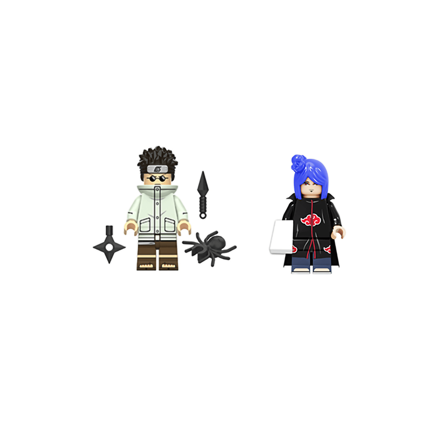 - В состав набора входитРок Ли, Цунадэ, Хирузен Сарутоби, Орочимару, Шино Абураме, Конан, Наруто, Учиха Итачи, Хината Хьюга, Саске Учиха, Чоуджи Акимичи, Яхико, Кисаме Хошигаки, Кисаме Хошигаки