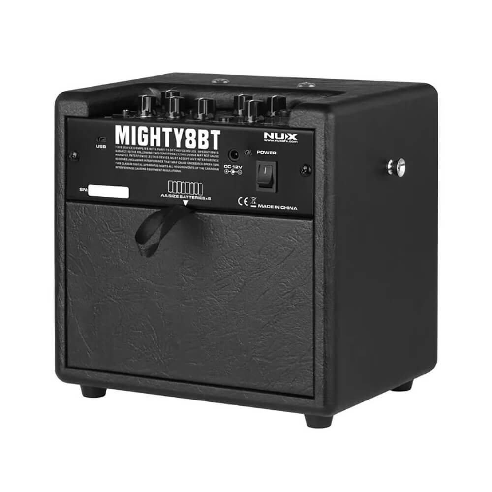 Комбоусилитель гитарный Nux Mighty-8W – портативное устройство со всеми необходимыми для игры функциями. Комбик для гитары поддерживает инструментальный и микрофонный выходы, беспроводное соединение по Bluetooth. Управлять усилителем можно через мобильное приложение либо клавиши, расположенные на задней части. Для удобства транспортировки на верхней части корпуса создана ручка. Гитарный усилитель поддерживает 3 пресета для гитары с позможностью одновременного использования 3 эффектов. На микрофоне можно отрегулировать громкость, уровень реверберации. Есть встроенная драм-машина с 9 разными стилями барабанов. Устройство может работать от сети или батареек.