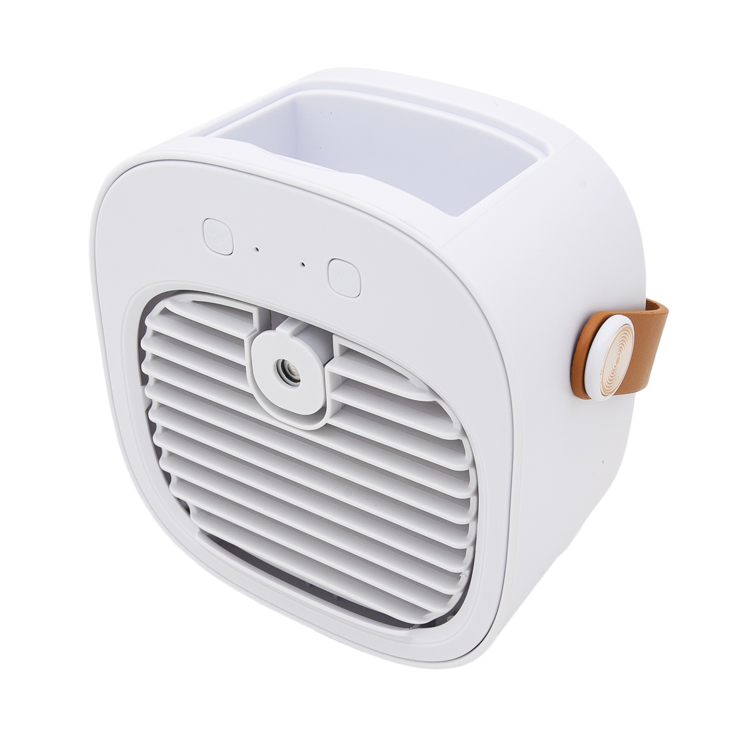 Мини кондиционер Cooling Fan c функцией распыления воды предназначен для охлаждения, увлажнения и очищения воздуха в помещении. Настольный кондиционер распыляет воду в течение 8 часов. Жидкость заливается в специальный отсек объемом 0,15 литров. Портативный кондиционер может работать в трех скоростных режимах вентилятора, которые меняются путем нажатия на кнопку на корпусе. Для транспортировки на корпусе предусмотрена рукоятка из эко-кожи. Мини кондиционер заряжается через USB кабель. Его можно использовать дома, на работе, в машине или на природе благодаря компактным размерам и небольшому весу.