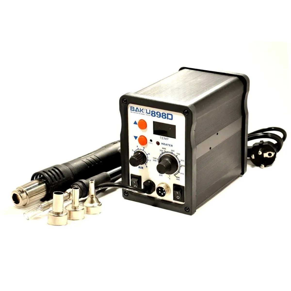 Термовоздушная паяльная станция Baku BK-898D с цифровым управлением поддерживает плавную регулировку температуры с точностью до 1 градуса. Значения достигаются за 5-7 секунд и стабильно держатся на протяжении всего процесса пайки. Цифровая термовоздушная станция оснащена уникальной системой охлаждения и продолжительным продувом воздуха после отключения. Паяльная станция с цифровым дисплеем оснащена трехзначным индикатором и удобной регулировочной панелью. Благодаря высокопроизводительному нагнетателю турбинного вида термовоздушная паяльная станция получает большой поток воздуха с минимальным уровнем шума.