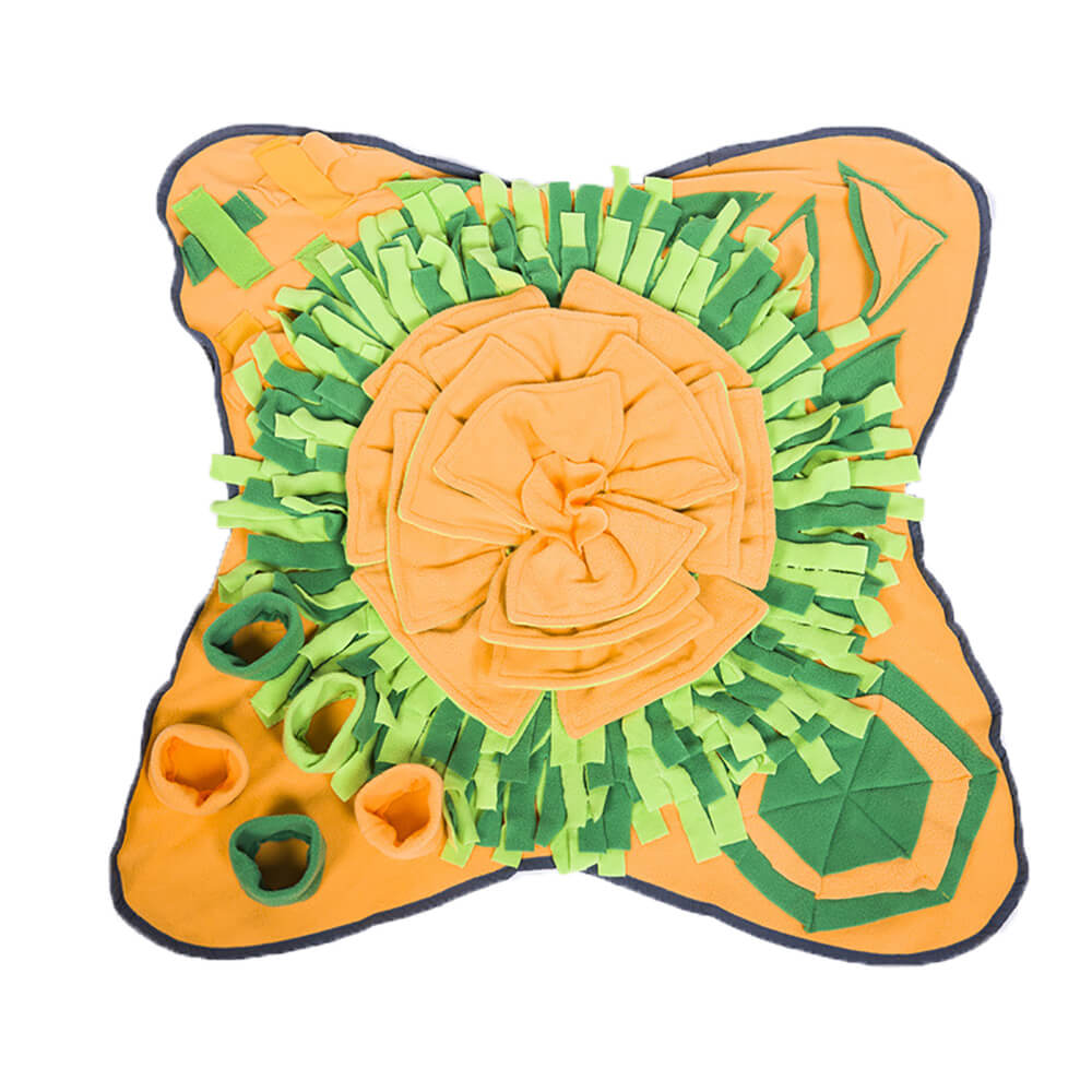 Нюхательный коврик для собак Starly из полиэстера предназначен для развлечения питомца без участия хозяина, снятия стресса, тренировки нюха. Нюхательная игрушка выполнена из безопасной для здоровья питомца ткани, окрашенной в желтые, оранжевые и зеленые цвета. Многослойная развивающая игрушка для собак оснащена множеством кармашков, в которые можно спрятать любимые собачьи сухие лакомства. Игрушка для поиска еды подойдет питомцам любых пород, размеров и возрастов. Игрушка для поиска лакомств может использоваться в доме или квартире, а также на улице.
