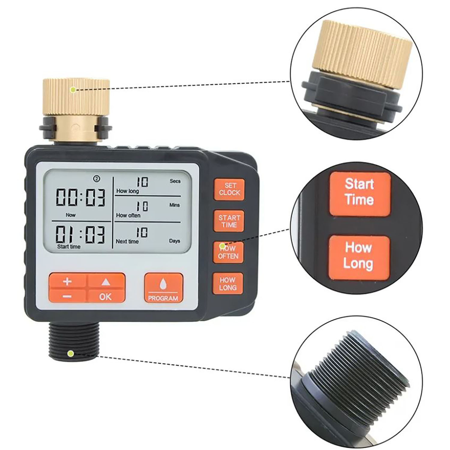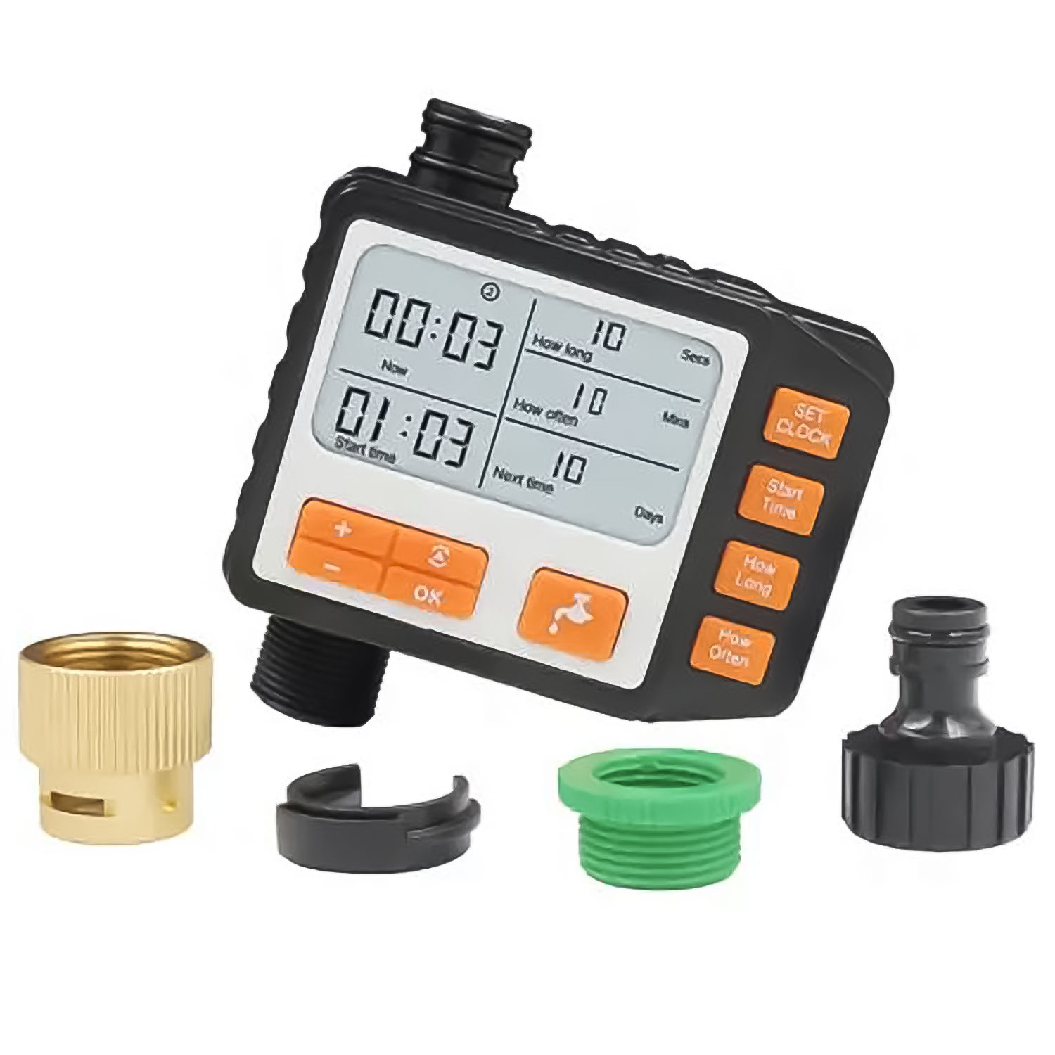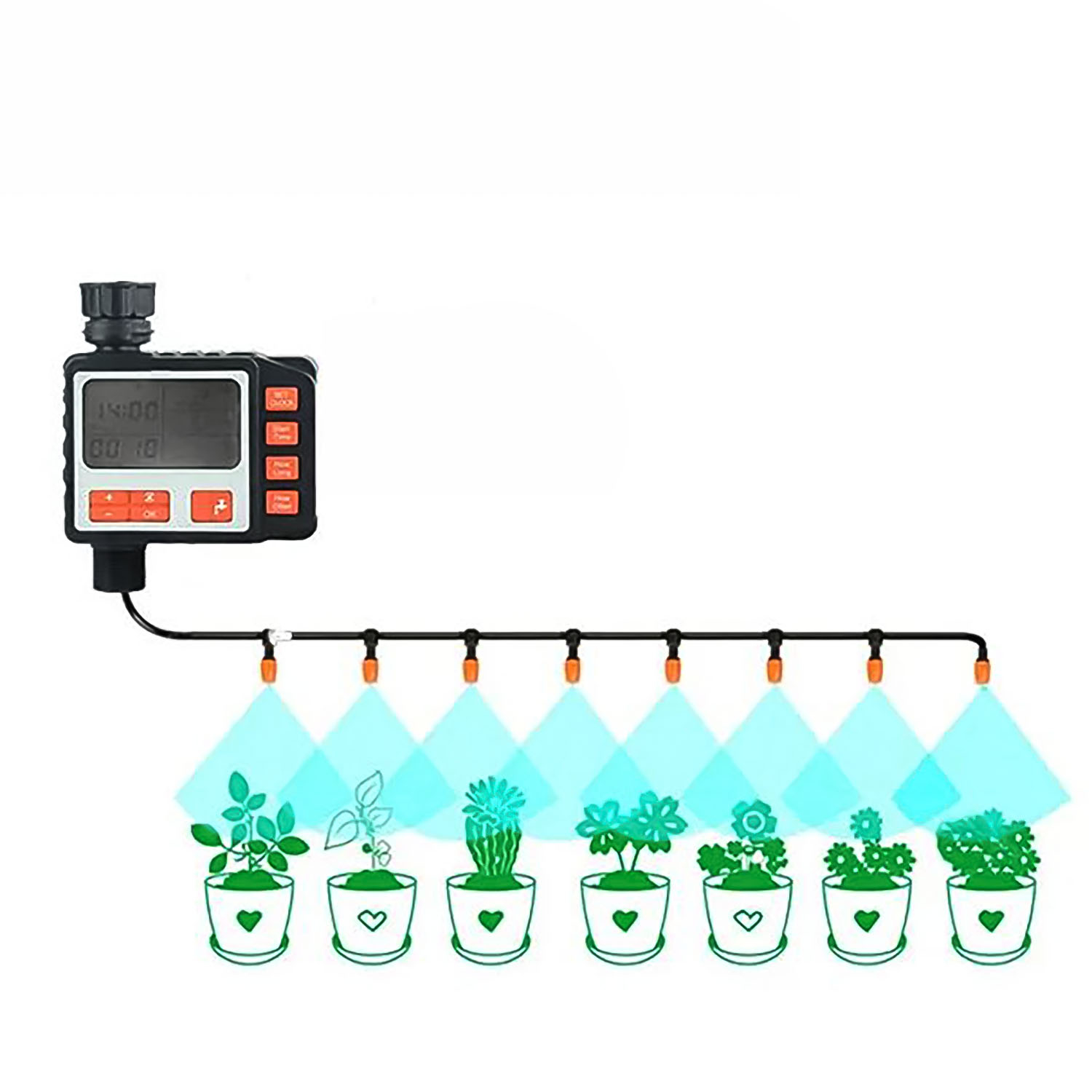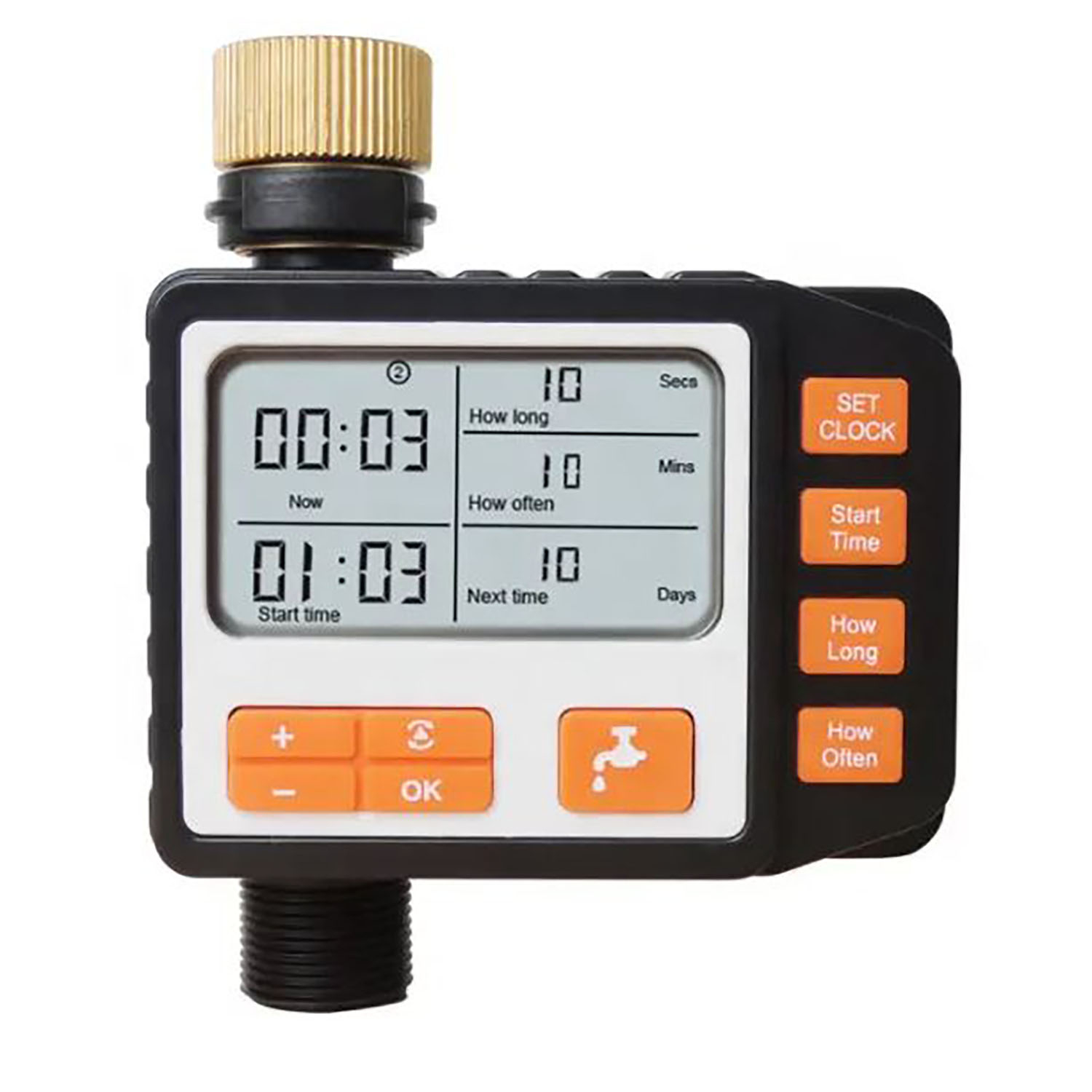 - Время полива10-55с/на 5 секунд 1-59мин/на 1минуту 1-99ч/на 1час