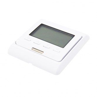 Настенный врезной терморегулятор применяется в системах теплого пола. Прибор оснащен встроенным терморезистором для измерения температуры в месте установки и дополнительным датчиком температуры, который монтируется непосредственно в пол на расстоянии не более трех метров от терморегулятора. Диапазон измерения и регулирования температуры – от 5 до 90 градусов с шагом от 0.5 до 10 градусов. Реле терморегулятора рассчитано на коммутацию нагрузки до 3520 Вт.